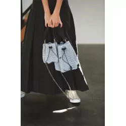 - Pochon design aux cordelettes en suédine en guise d’anses