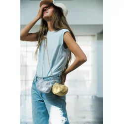 - Mini-sac tout rond rappelant un coquillage ou un macaron